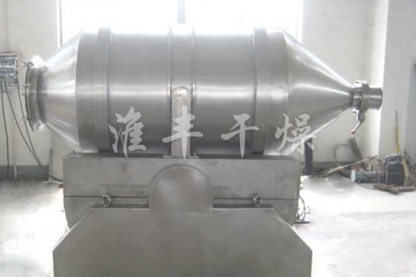 EYH 二維運動混合機的轉筒可同時進行二個運動,一個為轉筒的轉動,另一個為轉筒隨擺動架的擺動。被混合物料在轉筒內隨轉筒轉動、翻轉、混和的同時,又隨轉筒的擺動而發(fā)生左右來回的摻混運動,在這兩個運動的共同作用下,物料在短時間內獲得充分的混合。EYH二維混料機適合所有粉、粒狀物料的混合。